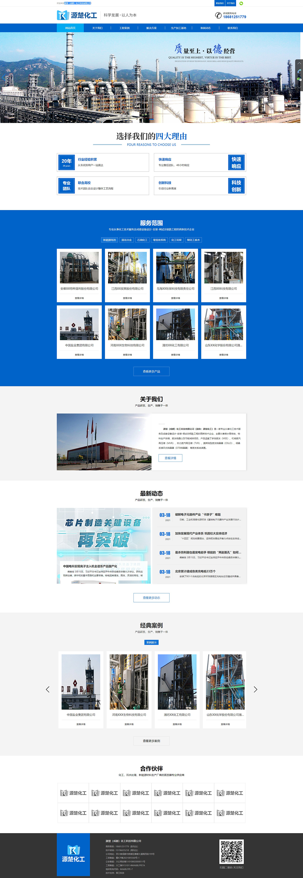 源楚(成都)化工科技有限公司,座落于成都市新都区、隶属湖北中原楚天化工技术有限公司全资子公司,以下简称“中原楚天”、是中原楚天在西南地区因市场开拓、技术资询、售后服务需要而成立的专业化团队、 业务领域含盖零排放、浓缩、蒸发结晶、分离、干燥、泵阀管件等成套系统、提供多效蒸发(MEE)、机械蒸汽再压缩(MVR)、热力蒸汽再压缩(TVR)、奥斯陆型蒸发结晶器(OSLO)、细晶浆循环式结晶器(DTB结晶器) 等蒸发系统装置的研发、设计、装备制造、安装调试、培训等一站式技术服务.公司通过对上百套设备多年运行的实际情况分析总结,在预防设备结垢、睹塞、物料挂壁等问题上,有着成熟的解决方案。公司在设计时会根根溶液的沸点、溶解度、粘度、热导率、COD含量,COD沸点等实际情况,选择最为合理、最为稳定的技 术参数及工艺流程。我公司先后设计的蒸发系统分别用于处理:硝酸铁、硝酸锂、氯化钠、氯化铵、氯化钾、硝酸铵、硝酸钾、氯化钙、硫酸钠、硫酸铵、硫酸钾、七水硫酸锌、亚硫酸钠、硝酸钠、甲酸钠、氢氧化钠、碳酸钠等溶液。其成熟的设计,高质量的加工制造,准时的安装调试,稳定的运行和完 善的售后服务,赢得了用户的肯定和支持。